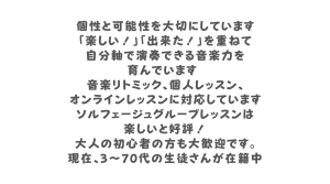 front オンラインレッスンも開催中 教室は、新栄小学校、日新小学校、昭栄中学校校区内です。 体験レッスンのご予約受付中🎹 お問い合わせ 教室ブログはコチラ♪ 年齢や目的、希望に合わせた音楽とピアノの楽しさを伝えています レッスン室には2台のピアノがあって、ピアノアンサンブルも出来ます♪